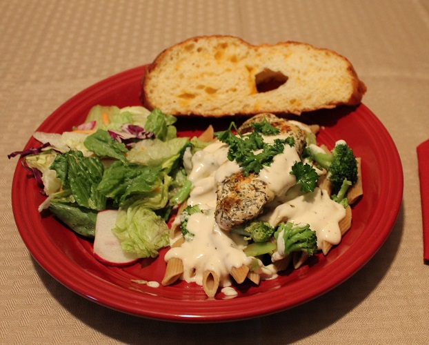 Serve pasta with chicken on top, and cover with sauce. Garnish with fresh parsley if desired.