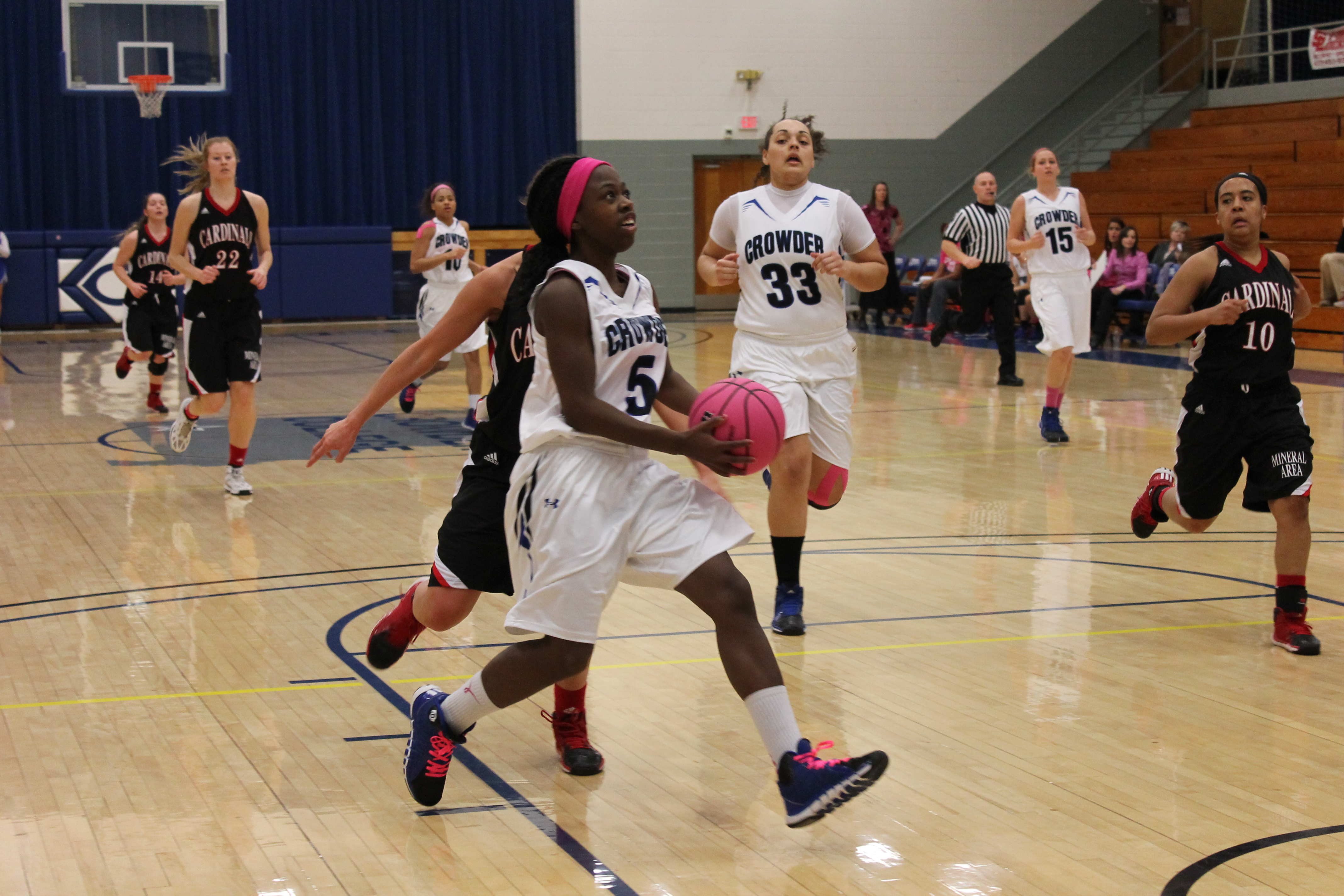 A three point shot by Crowder’s Courtney Jones, freshman #3 general studies major, would shorten Mineral Park’s lead to one point, 63-62, with 1:10 remaining to play. After a timeout with 1:07 remaining, Jones would score the two points needed to give Crowder the lead for good, as well as give them their 9th win of the season.